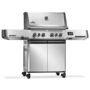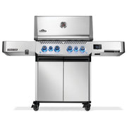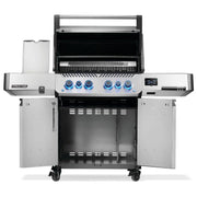 The stainless steel Prestige 500 Connected, Propane Grill with Infrared Side and Rear Burner is a dynamic evolution in grilling, featuring Wi-Fi and Bluetooth connectivity that brings you closer to your grilling experience than ever before. Monitor temperatures, set timers, get cook assistance, and receive high-temperature warnings - all from your smartphone. With included temperature probes and an integrated LCD display, you will always know exactly what happening inside your grill. A larger rotisserie burner and infrared sear station, side burner provide enhanced performance. LED Control Knobs illuminate for nighttime entertaining and feature SafetyGlow, glowing red added safety when the gas is on. The stow-away warming rack keeps things tidy, and hidden tool hooks provide extra prep space. Enjoy new ways to experience connected living and unique cooking methods with the compelling Prestige 500 Connected Gas Grill.