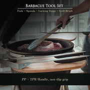 • Ergonomic and Comfortable Grips: Designed for comfort and ease of handling during grilling sessions.