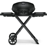 Portable grilling like no other, the Phantom TravelQ™ PRO285 Portable Propane Gas Grill with scissor cart is a luxurious matte black and hides many secrets. From the top of the lid to the cart, this portable gas barbecue is silky matte black. The edgy Phantom TravelQ™ Portable Gas Grill features a high top lid and two stainless steel burners to take portable grilling to the gourmet level. Barbecue up to 20 hamburgers or roast succulent turkeys, whole chickens, and even prime rib. The included warming rack with an innovative hinge design allows the rack to flip back when not in use to provide full access to the main cooking grids. It's perfect for warming or providing additional cooking area. A nimble, matte black, folding cart features all-terrain wheels, easy setup, compact storage, and propane tank straps. The deep and dark Phantom TravelQ™ PRO285 Portable Propane Gas Grill is more than just a look. It's a lifestyle.