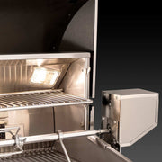 Echelon drip tray: Built with ball bearings for easy glide. Perfect size for easy handling. Use with Fire Magic drip tray liners for convenient cleanup. A chrome analog thermometer with meat probe is included, digital thermometer upgrade available which provides a state-of-the-art electronic thermometer display, with meat probe, and has an impressive array of features.