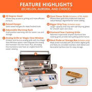 Echelon Diamond defines luxury in grilling. Features Cast Stainless Steel Burners: Burners Made of ¼” Thick Cast 304 Stainless Steel 304 grade burners weighing up to 12 lbs, featuring a lifetime warranty. Designed with a protective lip above the ports to prevent clogging from grease. Guaranteed for life.