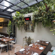 Pivot brackets enable precise heat direction and coverage control.