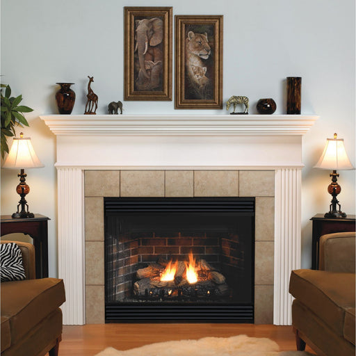 Product Details The Deluxe 34- and 36-inch B-Vent fireplaces include hand-painted logs artfully arranged on our more compact Co...