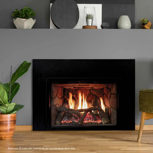 Product Details Rushmore fireplace inserts feature the TruFlame system – a combination of technology and aesthetics to create realistic flames...