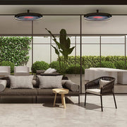 This model includes a twin pole mounting system, allowing for stable and precise positioning in spaces where ceiling mounting is not ideal. The pole mount is perfect for outdoor dining areas, seating arrangements, and commercial layouts that require targeted heat coverage.