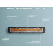 Bromic Heating leads the market in supplying your outdoor patio with radiant heaters that consistently showcase exceptional performance and unmatched quality. The Tungsten Smart-Heat patio heater stands apart from standard patio heaters by featuring a spectral reflector, evenly dispersing 3,000 Watts of radiant heat to cover areas of up to 100 square feet. The infrared heating element tubes are frosted to reduce harsh glare, creating a warm and inviting amber glow. The Tungsten Smart-Heat infrared electric patio heater offers the flexibility of wall or ceiling mounting and can be integrated into smart system controls for customized heating preferences. With wall and ceiling mounting options, you can effortlessly adjust the direction of heat flow for personalized directional heating. Bromic Heating Tungsten electric heaters are an excellent choice for both commercial and residential installations. They feature a corrosion-resistant high-temperature coating and a tamper-proof electrical wiring enclosure, ensuring longevity and durability. This heater operates on 240V AC current and must be professionally hard-wired by a licensed electrician. Please consult a licensed electrician to assess its suitability for your specific needs.
